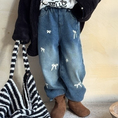 [빠른수입] 리본페인팅기모데님바지