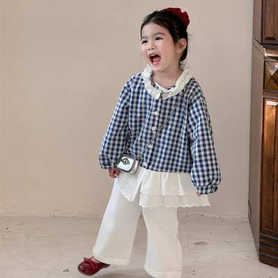 비다이어리.블루체크레이스블라우스