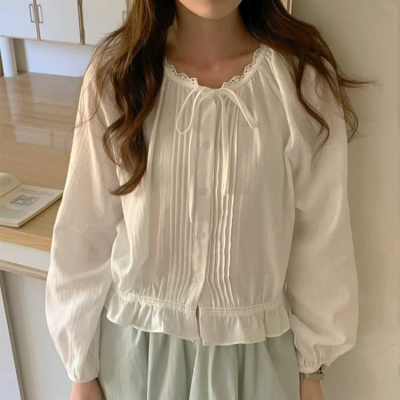 on.[BL666]리본핀턱크롭블라우스