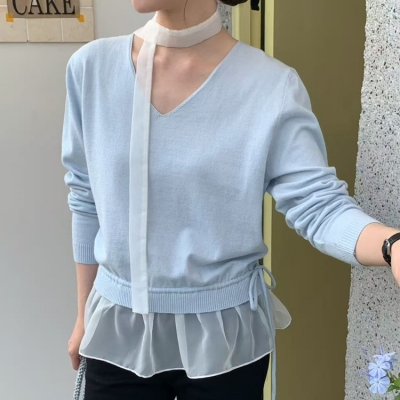 on.[NT719]쉬폰머플러프릴레이어드니트