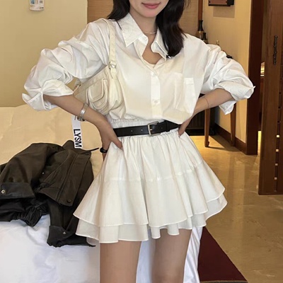 on.[OPS1494]셔츠 캉캉 벨트 미니 원피스
