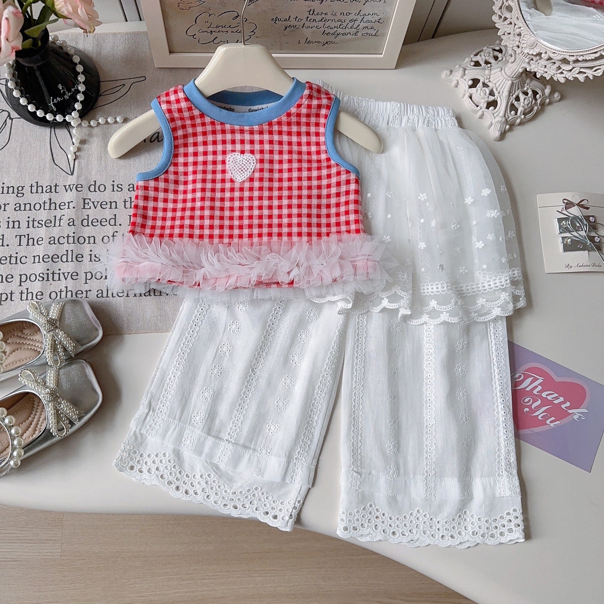 [수입]체크레이스펀칭팬츠셋